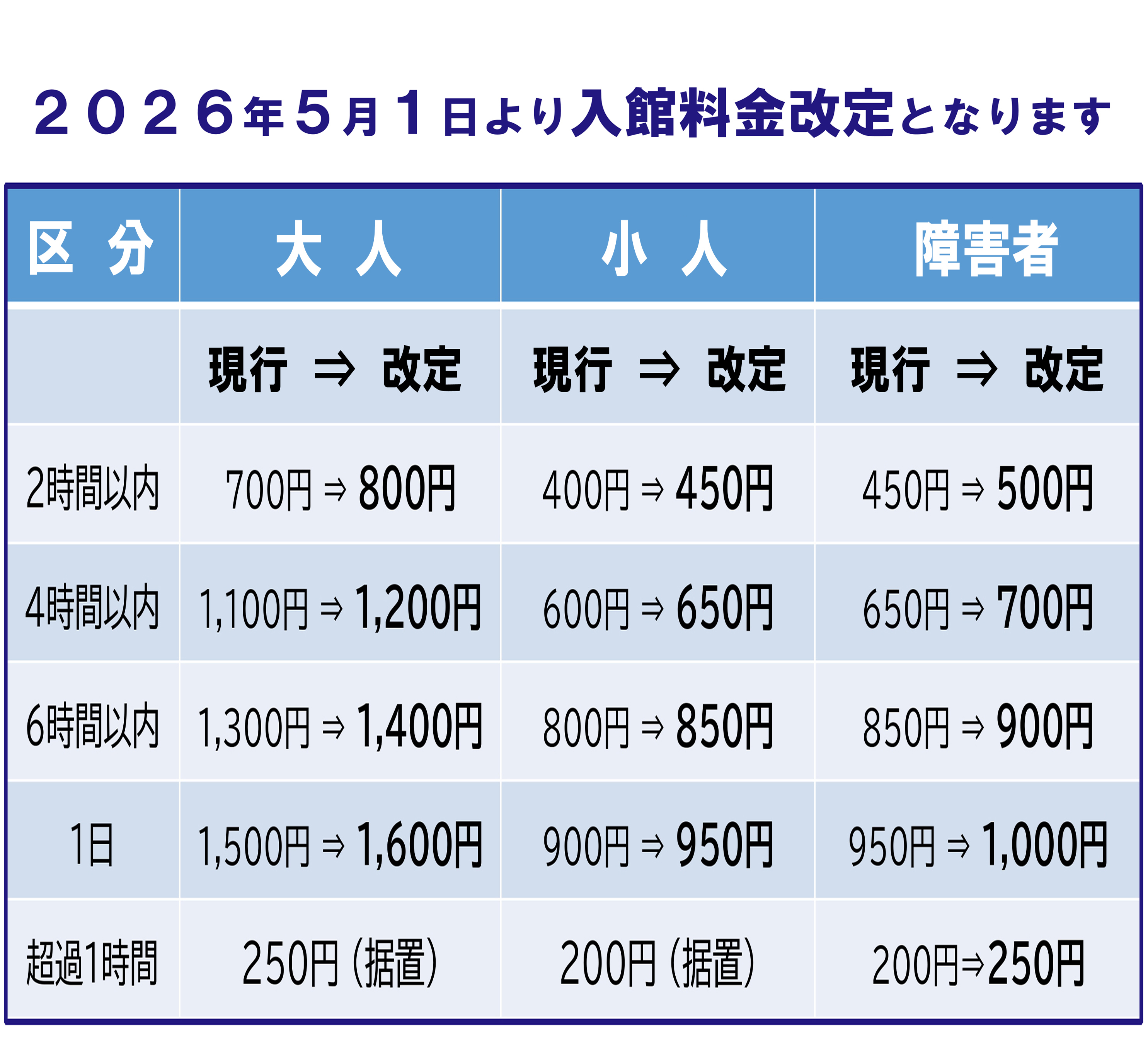 ◆◆◆ 2026年5月1日よりの入館料金 ◆◆◆